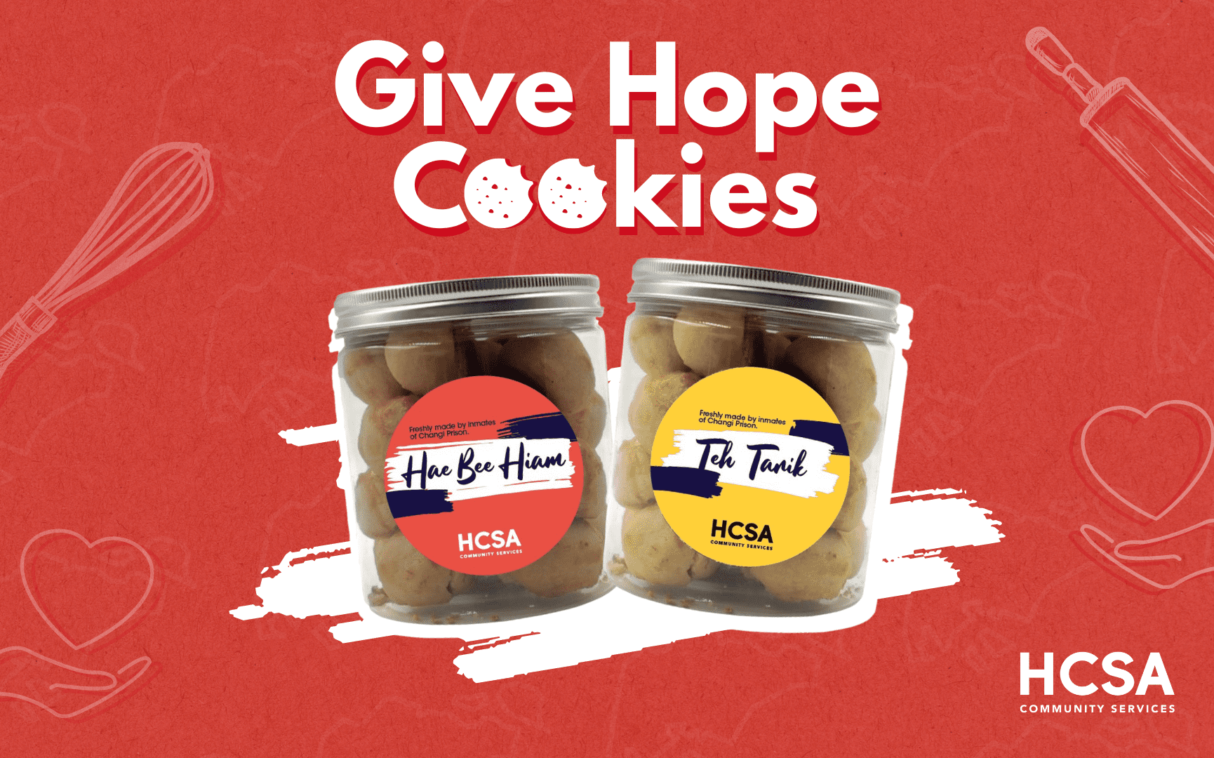 Check out HCSA’s very own cookies – Give Hope Cookies – produced in collaboration with YRI Bakery, a wholly-owned subsidiary of Yellow Ribbon Singapore!