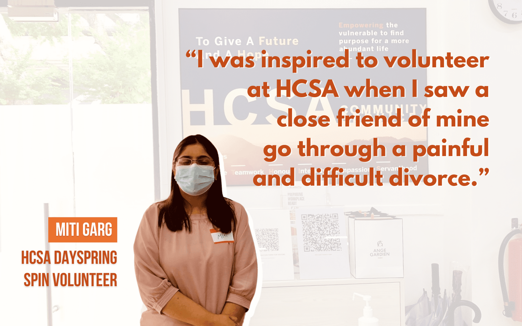 I was inspired to volunteer with HCSA when I saw a close friend of mine go through a painful and difficult divorce‭. ‬Seeing how she struggled to manage her job alongside raising her children made me want to help other single mothers who were also going through the same thing‭.‬‬‬