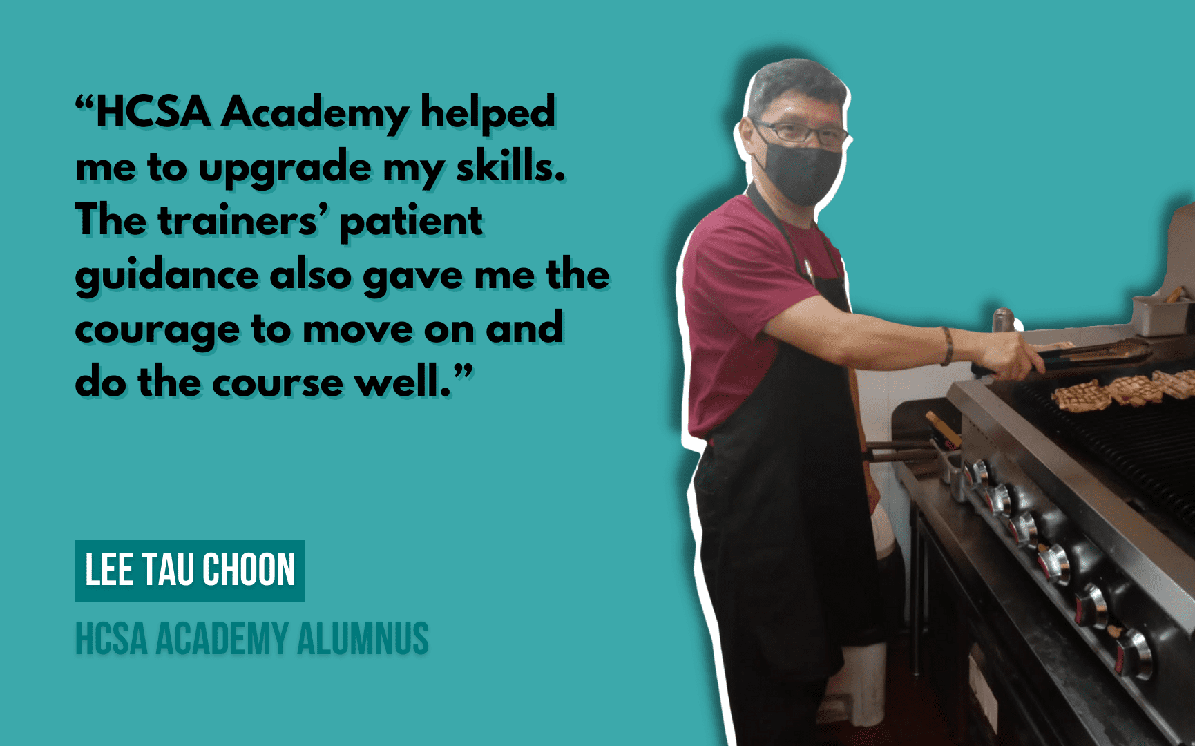 Achieving the WSQ Higher Certificate in Food Services‭ (‬Culinary Arts‭) ‬at HCSA Academy brought Tau Choon one step closer to his goals and aspirations.