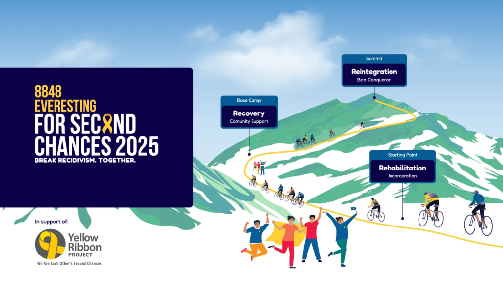 Everesting for Second Chances is our signature endurance challenge that rallies the whole community to stand with ex-offenders as they work towards reintegration, dignity and a fresh start. Inspired by the height of Mount Everest, participants clock elevation gain through cycling or other physical activities — a powerful symbol of the uphill climb our beneficiaries face every day.