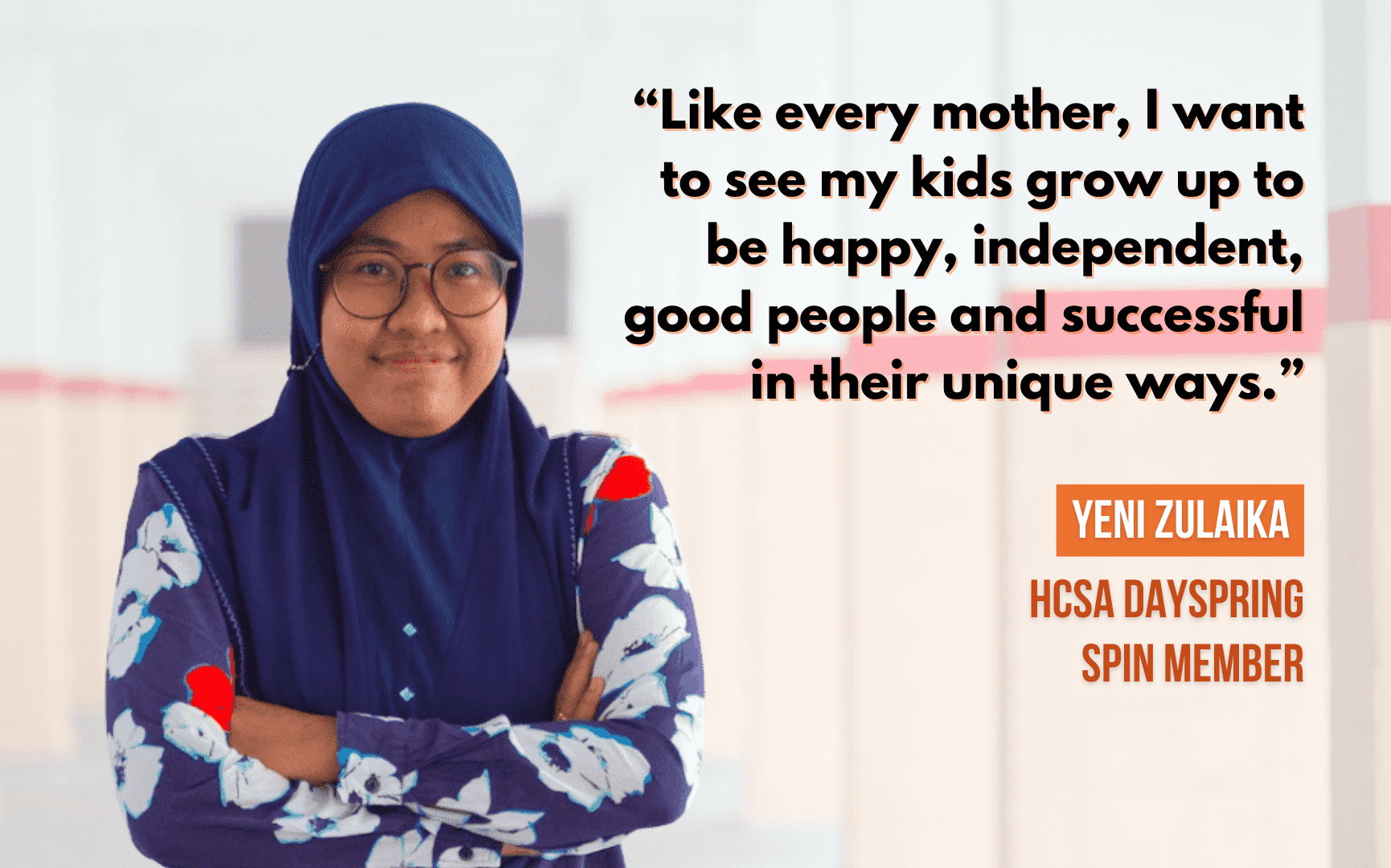 Since her case closed in 2019, Yeni has become an alumni member of HCSA SPIN. She has participated in various events the programme has organised and shares her life story with others. She is grateful to HCSA SPIN for extending care to her even after the closure of her case.